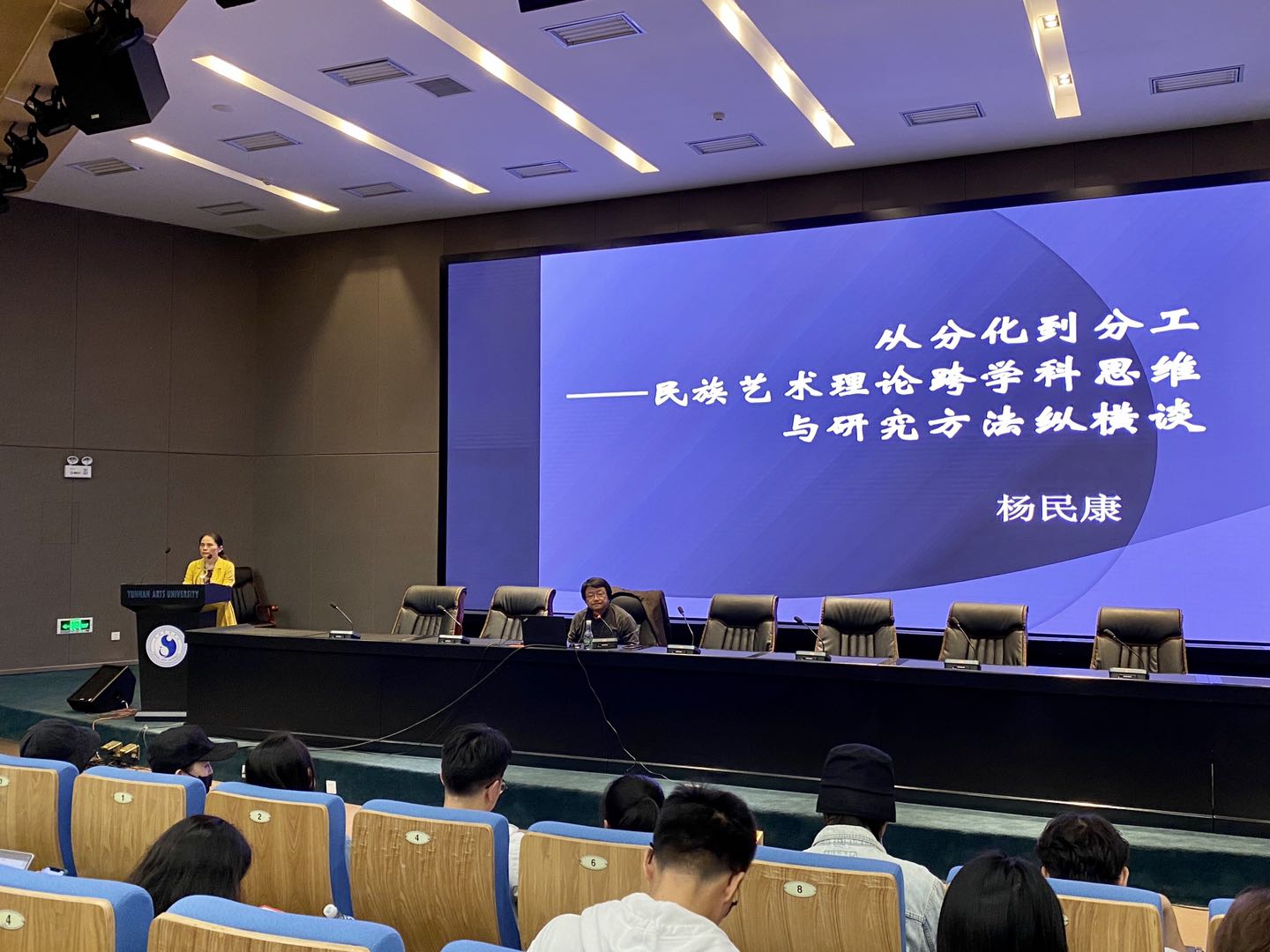20201027日晚上1900,vwin德赢AC米兰合作vwin德赢ac米兰官网邀请民族音乐学家、中央音乐学院研究员、博士研究生导师、中国少数民族音乐学会副会长、中国艺术人类学学会副会长杨民康教授,在图书馆报告厅作了一场题为《从分化到分工——民族艺术理论跨学科思维与研究方法纵横谈》的学术讲座,讲座由魏美仙教授主持。
