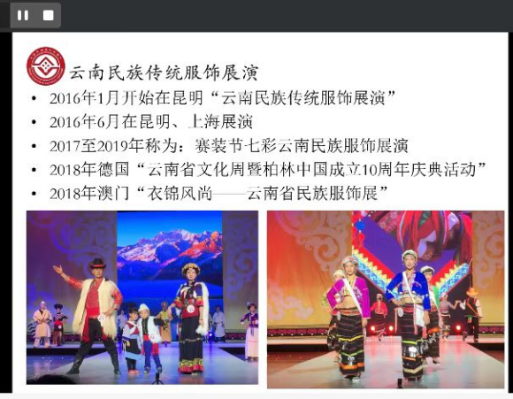胡荣梅老师从我国的非遗名录、国家文化生态保护实验区、中国非遗传承人以及对于云南省非物质文化遗产保护的方针引入,深入浅出地分析了当代云南省在非物质文化遗产保护与传承方面的成功案例和实践经验。