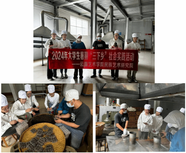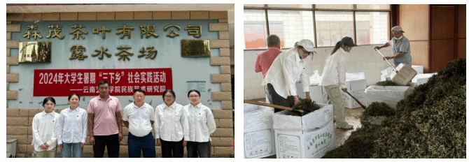 调研首先对墨江老牌茶场——露水茶场、他郎茶场和新兴茶场——“水之灵”开展了调研。在露水茶场,调研团深入茶场工作环境,了解了当前该茶场的经营模式,并与茶农并肩劳作,参与茶叶采摘、封装等过程。他郎茶调研参与,访谈须立贡茶第五代非遗传承人调研团了解到,当前茶场的难点在于技术人才欠缺,工人职业化转型难等问题,并且随着新兴茶场品牌的出现,老牌茶场在竞争力、管理上也遇到一些实际困难,调研团和访谈人深度讨论了当前农旅结合是否能达到转型,以及坚守传统与创新结合等问题。