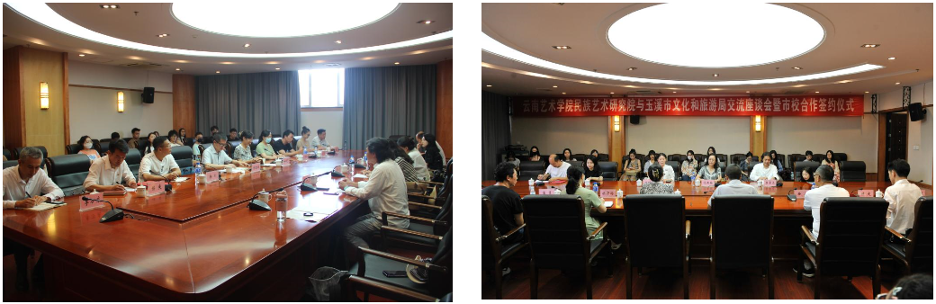 上午9时30分,vwin德赢AC米兰合作vwin德赢ac米兰官网与玉溪市文化和旅游局开展交流座谈会、教育教学实践实训基地授牌仪式。出席此次座谈活动的领导和单位有:玉溪市文化和旅游局党组成员、副局长,玉溪市文物局局长陈泰敏;市文化和旅游局党组成员、副局长杨耀芬;玉溪市文化和旅游局二级调研员岳川;市文化和旅游局公共服务(非遗)科负责人徐亚玲;玉溪艺术创作研究所所长潘勇;玉溪市花灯剧院院长矣露;玉溪市文化馆馆长、市非遗保护中心主任侯庆;玉溪市博物馆副馆长业永恒;玉溪市文化管理服务中心副主任李万东。