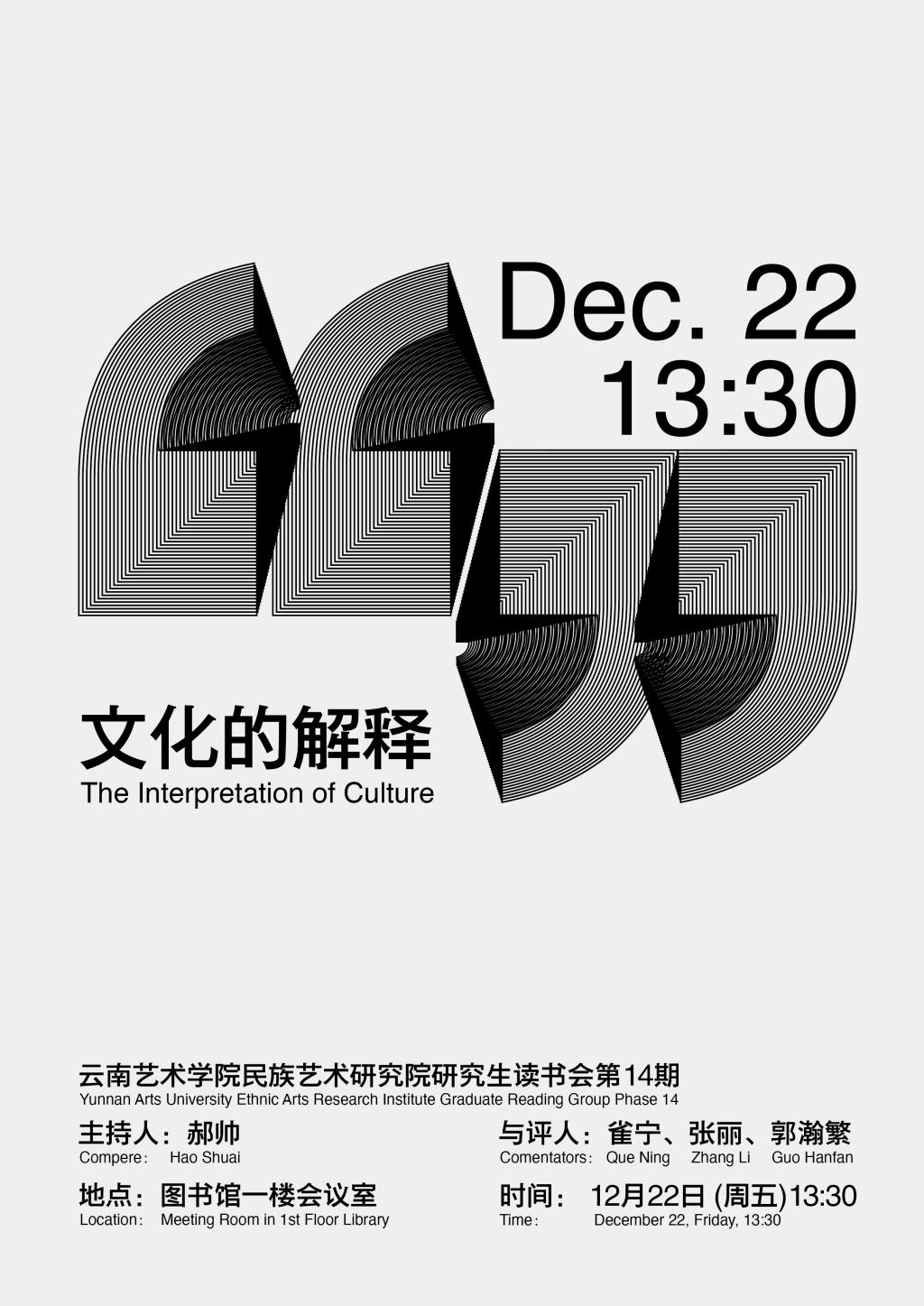 2023年12月22日下午,vwin德赢AC米兰合作vwin德赢ac米兰官网第十四期读书会在图书馆会议室举行。本次读书会由郝帅博士主持,围绕克利福德·格尔茨的著作《文化的解释》展开交流和讨论。vwin德赢ac米兰官网教师郭瀚繁、张丽、雀宁,以及vwin德赢ac米兰官网2022级、2023级硕士研究生参加。